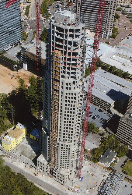 Fly & Form Structure’s specialty work includes working with Batson-Cook Construction to add 32 floors, 506,960sf, on top of The Mint, an existing 12-story building in downtown Charlotte, NC