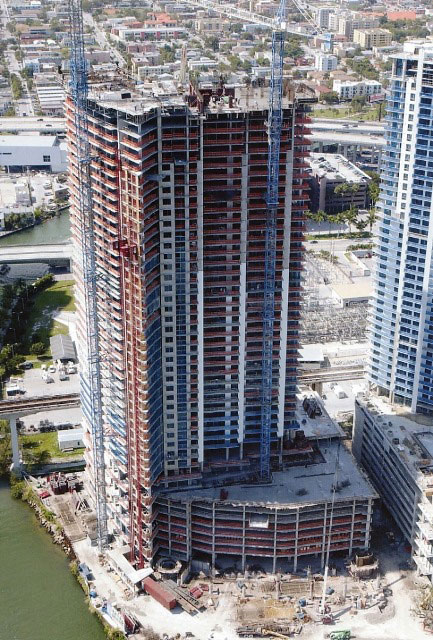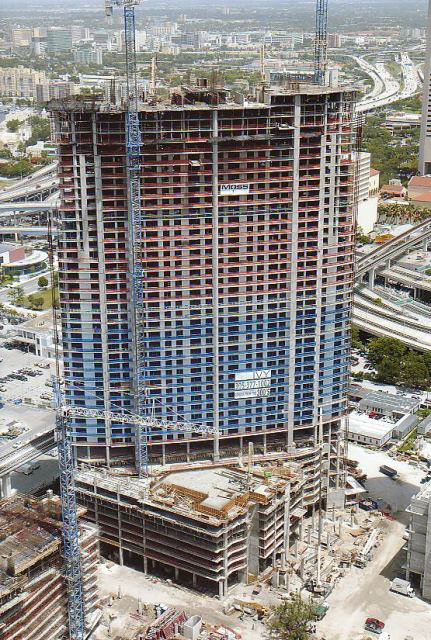 Brickell Heights, Miami, FL - Formwork for walls, foundations and slab on grade, columns, drop beams, and 1,559,955sf of elevated slabs. East Tower- 54 floors, West Tower- 52 floors.3